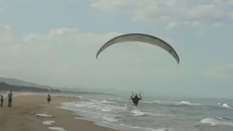 Il parapendio che volava in basso in caso guasto avrebbe messo semplicemente i piedi in acqua bagnandosi le gambe.